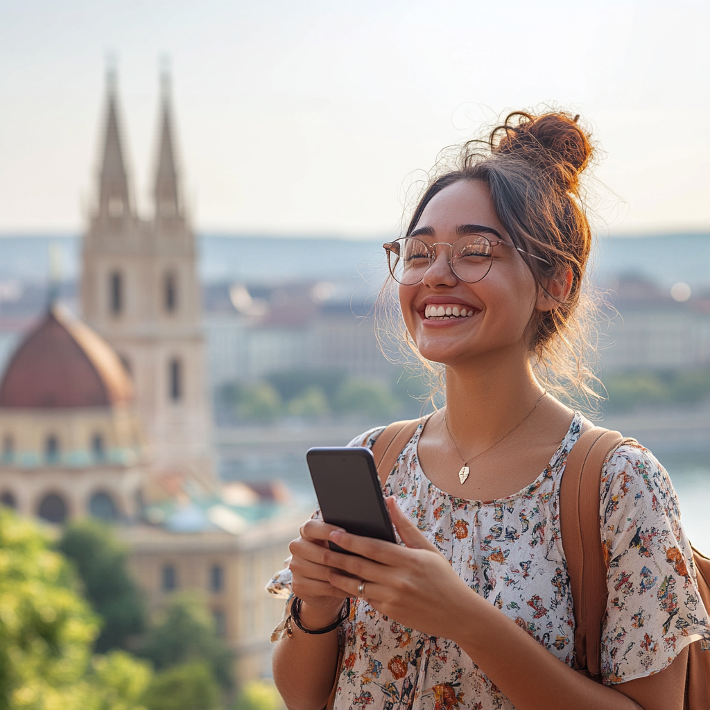 - 📱 Condividi le Tue Avventure in Tempo Reale: selfie al Parlamento, video dalle terme o tramonti sul Danubio sempre online.